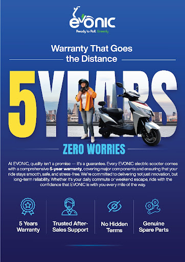 When you invest in an electric scooter, you're not just buying a vehicle — you're choosing a daily companion for your commute, errands, and eco-friendly lifestyle. At EVONIC, we understand the importance of trust and dependability in your ride. That’s why every EVONIC electric scooter comes with a robust 5-year warranty that covers the most critical components: motor, controller, wiring, throttle, and converter.
